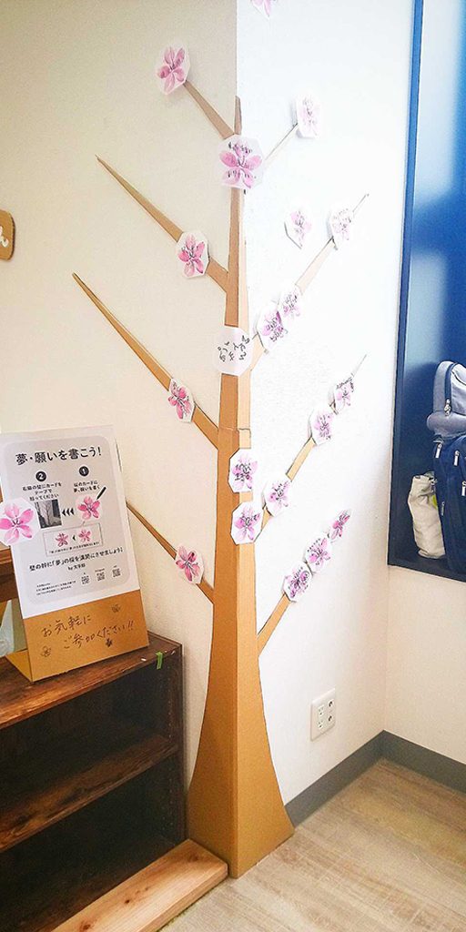 上写真のような桜の絵柄のカードに、お子様たちに夢や願いごとを書いて